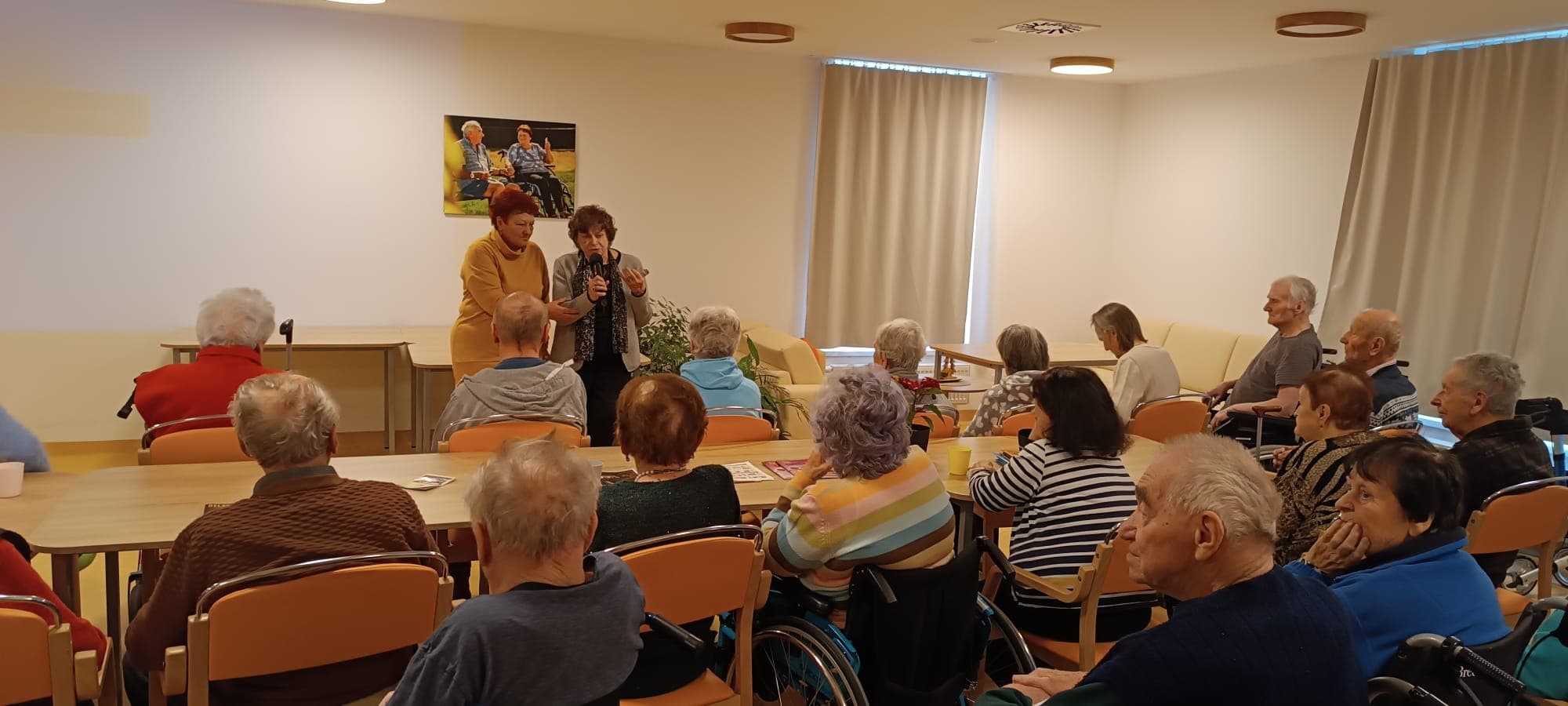 We offer single and double rooms with private bathrooms to our clients. All rooms are fully equipped. Clients may, upon agreement, furnish their rooms with small furniture items (chairs, shelves, paintings, lamps) as space and personal needs allow. A pleasant and spacious room environment ensures comfort and privacy for the client.